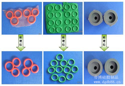 現(xiàn)在也有不少的硅膠制品廠家采用冷凍修邊,產(chǎn)品膠在低溫下 變硬、脆,且因厚度不同而變脆程度不同。就是說,在同樣的低溫條件下,薄的部分的變脆先于厚的部分。所以,利用溢邊與本體的厚度差異所導(dǎo)致的脆性梯度來完 成修邊,也就是抓住溢邊已脆而本體未脆的時(shí)間差,對(duì)待修產(chǎn)品施加摩擦、沖擊、振動(dòng)等外力將溢邊去除。而此時(shí)制品本體尚處于彈性狀態(tài)而不受損傷。后來。通過噴射介質(zhì)的應(yīng)用進(jìn)一步提高了修邊效果。
