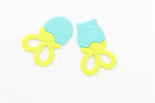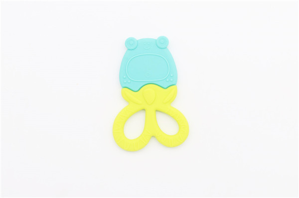 卡通青蛙硅膠牙齒矯正器簡稱硅膠牙膠,磨牙棒,此款牙膠主要采用雙色粘接成型工藝制作,有良好的生動性與立體感,讓嬰兒寶寶愛不釋手,材料安全環(huán)保,可放心與口腔身體皮膚接觸。